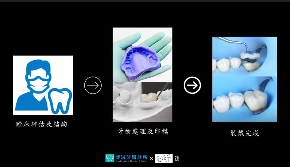 牙醫師完成蛀牙移除並經過精細的齒質(神經)保護後,會先用臨時填補保護印模部位,接著與技師討論3D齒雕的形狀與結構,中間大約間隔1-2週,確認牙齒術後狀況沒問題,3D齒雕製作完成就可以裝載完成,但製作出的成果是更加耐用美觀的我想就非常值得!!